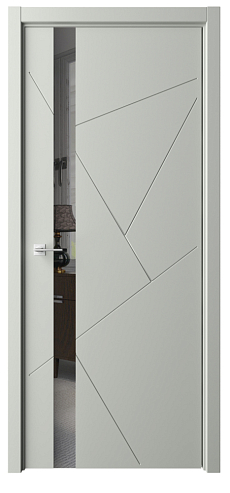 Дверь Геометрия-6 ширина 90 см Серый Эмаль Зеркало грей с замком кромка В цвет полотна в Тольятти