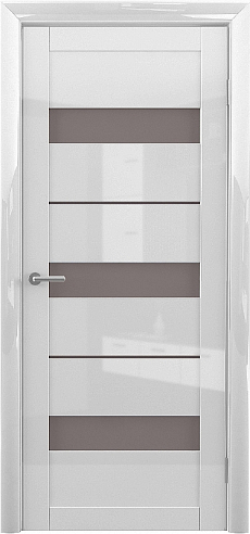 Дверь Прага ширина 90 см Белый глянец Глянец Стекло мателюкс бронза с замком в Тольятти