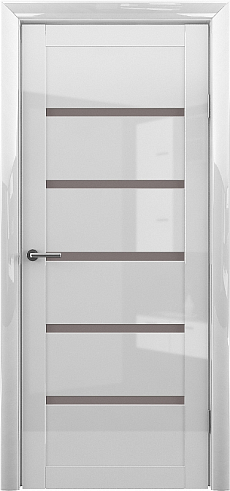 Дверь Вена ширина 90 см Белый глянец Глянец Стекло мателюкс бронза с замком в Тольятти